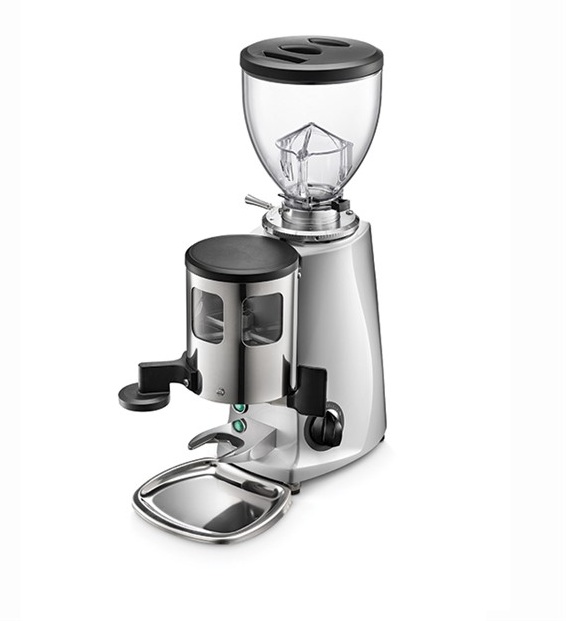 Grinder-doser with flat blades suitable for low consumption (decaf, single-origin coffee). Stepless micrometrical grinding adjustment. Available in the following versions: MANUAL: with manual switch TIMER: with timer switch
