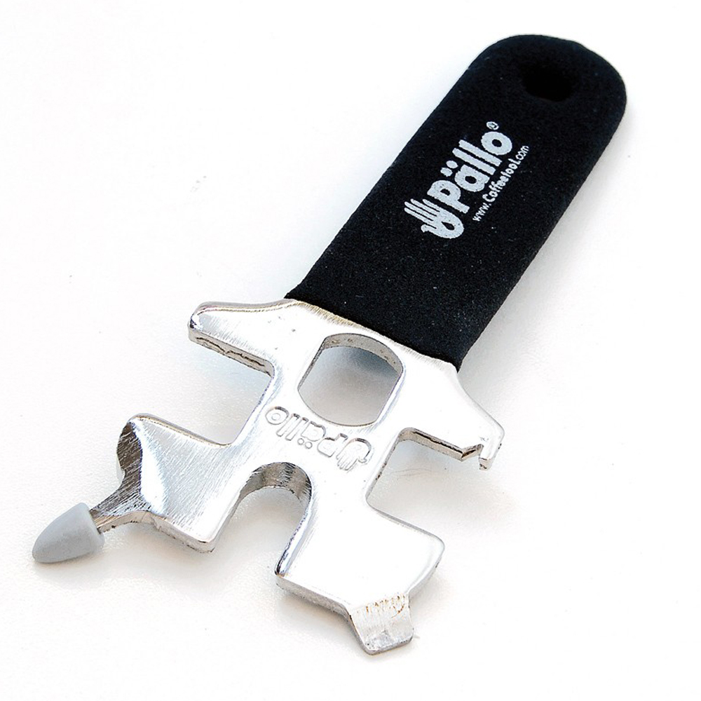 As versatile as a drawer full of tools and loaded with practical features; this handy device is ready to tackle many of the routine tasks and adjustments around the bar. Saves space too. Remove the group screen, pry off the portafilter basket, and tackle many other tasks with this versatile tool. Wrench 8mm, 11mm, 12mm, 13mm.